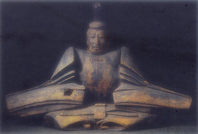 甲斐善光寺所蔵の頼朝木像。胎内背面に文保三年(1319)の銘が墨書されている。