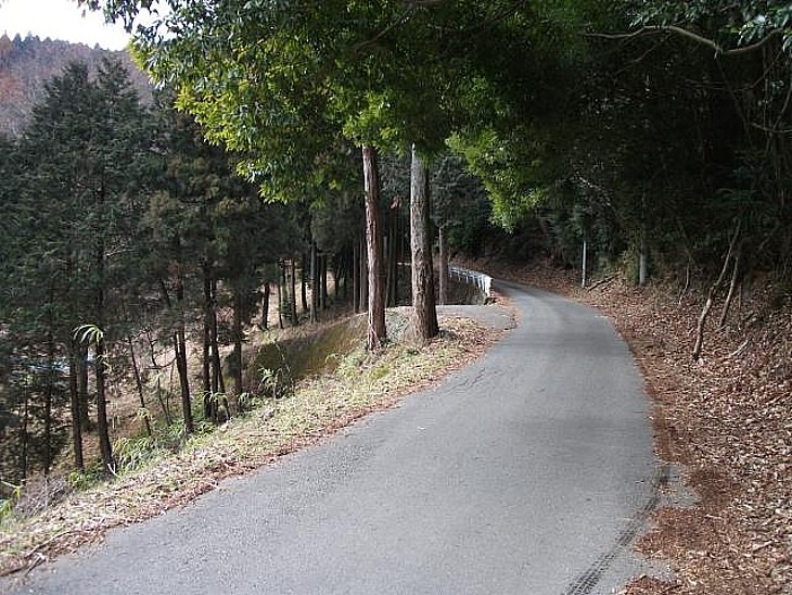 鹿路庭峠の方向へ登る舗装道路。道は狭いが対向車が少なく退避所もあるから安心だ。