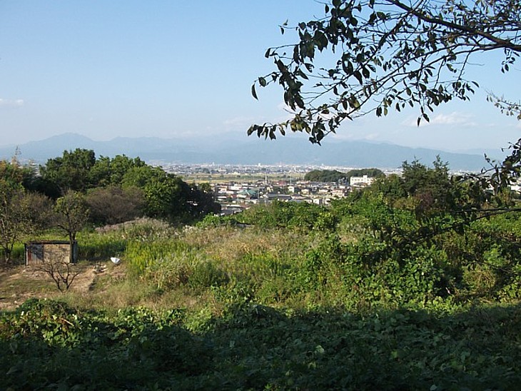 館跡から甲府盆地の南部を。後に義清の子・清光が進出する逸見荘(北杜市)の方向だ。