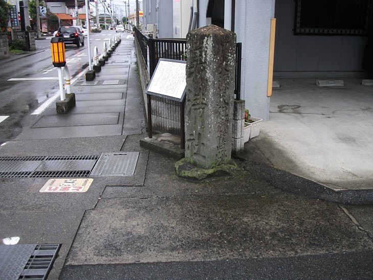 社頭から350m西の道標は寛政六年(1794)建立、身延参詣や富士川水運の旅人に義清神社を案内した。