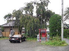 右: 左側には参拝者用の駐車場がある。花期には樹齢100年の枝垂れ桜が見事と言われる。混雑するだろうけどね。