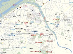 右:甲斐市河荘関連の史跡マップ 画像をクリック→ 拡大表示