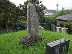 墳墓の地図)。鳥居の前を左へ歩き最初の路地を右折、70m先で左に曲がる道沿いの左側アパートの裏手にあるため