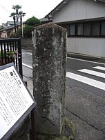上: 社頭の濠から約400m西、西条二区交差点から一つ西側の十字路に古い道標が残っている。ここが昔の河内路(身延みち)で、身延山参詣や