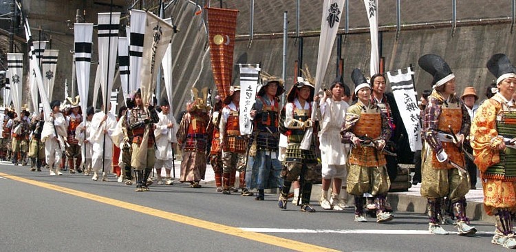 毎年4月の第一日曜日に開かれる「土肥祭」の武者行列(2010年、観光協会による写真)。