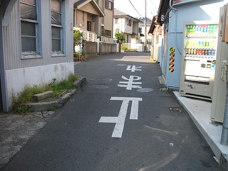 「わや」の100m東で由比ヶ浜大通りに合流する交差点から、稲瀬川へと向かう古道の入口部分を撮影。