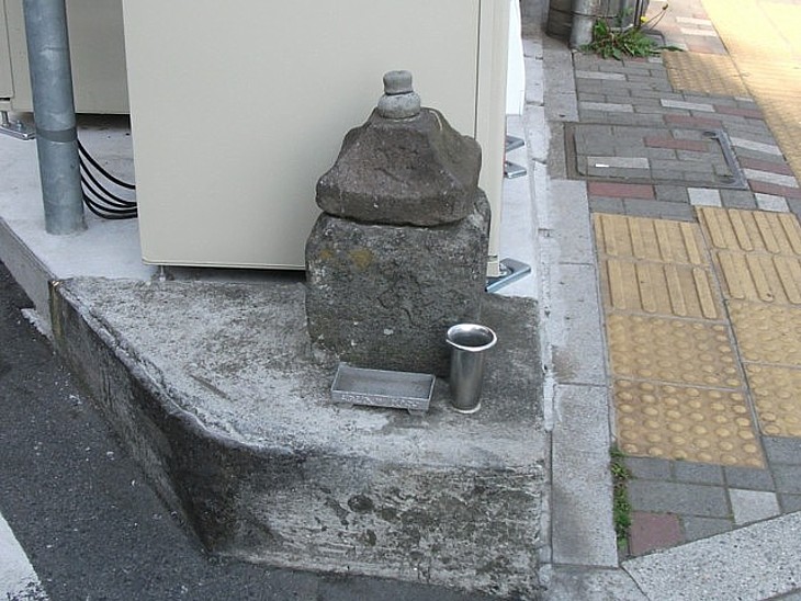「塔之辻」の語源となった五輪塔の残欠。既に頂頭部の空輪と風輪と中央の丸い水輪と基台を失っている。