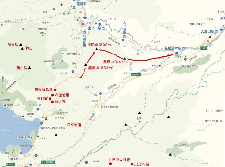 旧東海道と現在の箱根新道の中間、尾根ルートに通じていた湯坂道