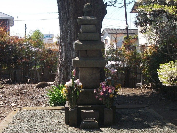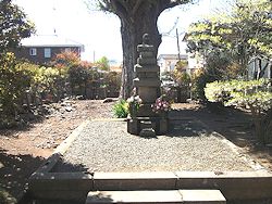 上: 参道の突き当り、銀杏の巨木を背にした結城朝光の墓標はやや変形の九層の層塔で、左に二代朝廣、三代廣綱、四代時廣の墓石が並んでいる。