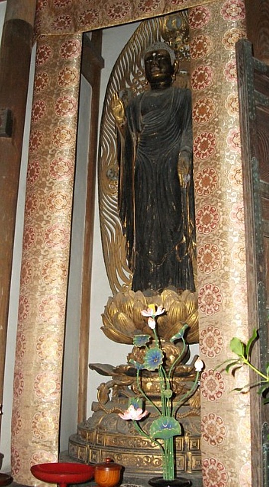 頼政堂の厨子中央には禅長寺本尊の阿弥陀如来立像(台座を含み約150cm)が立つ。