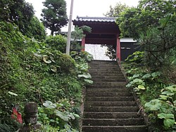 左: 緑に囲まれた山門は比較的質素な造り。山号は新光太平山で宗派は鎌倉・室町幕府と関係の深い臨済宗、円覚寺派に属する。