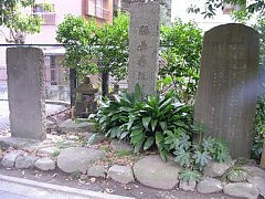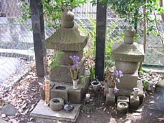 無秩序な開発を逃れたため発掘調査が完了した二階堂の永福寺跡(鎌倉宮の北側)と違って、周辺は既に住宅密集地となっている。元々ここにあった主従の墓と伝わる古い五輪塔は開発と共に失われ、昭和59年になって住民有志によって再建された慰霊墓と石碑のみが空しく残っている。